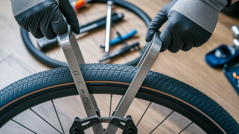 타이어를 벗길 때는 타이어 레버가 필요해요. 레버를 림에 넣고 지렛대처럼 밀면 타이어가 림 밖으로 빠져나오게 돼요. 두 개의 레버를 번갈아 사용하면 훨씬 쉽게 분리할 수 있어요. 튜브를 꺼낸 후, 물에 담가서 바람이 새는 부분에 기포가 올라오는 걸 보고 펑크 지점을 찾는 방법이 있어요. 아주 정확하답니다!